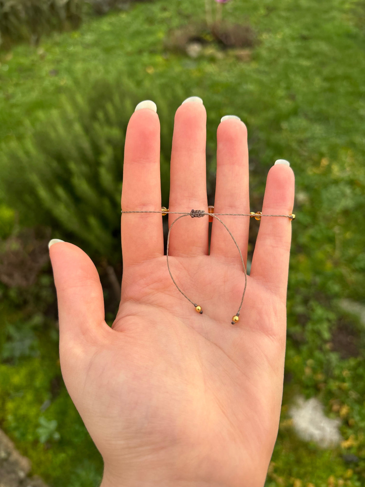 Le bracelet AVA se termine par un noeud coulissant. Ce système vous permet d’ajuster facilement la longueur de votre bracelet selon votre poignet.