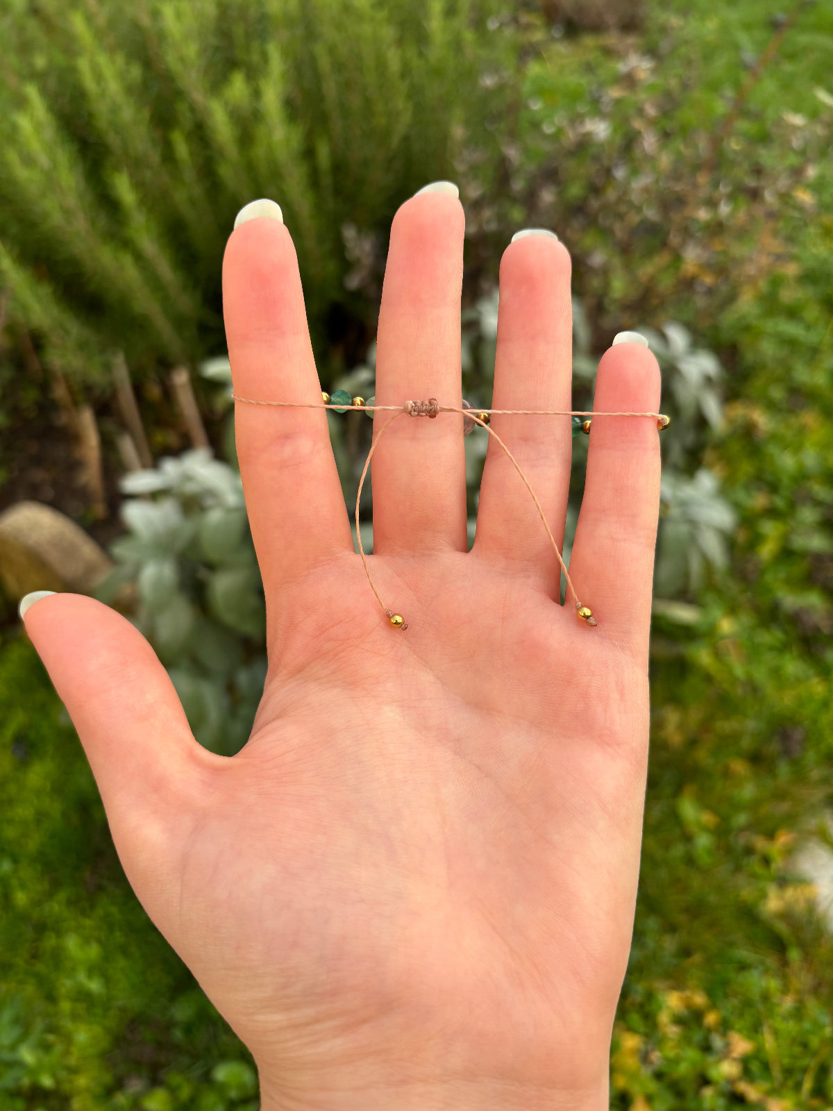 Le bracelet AVA se termine par un noeud coulissant. Ce système vous permet d’ajuster facilement la longueur de votre bracelet selon votre poignet.