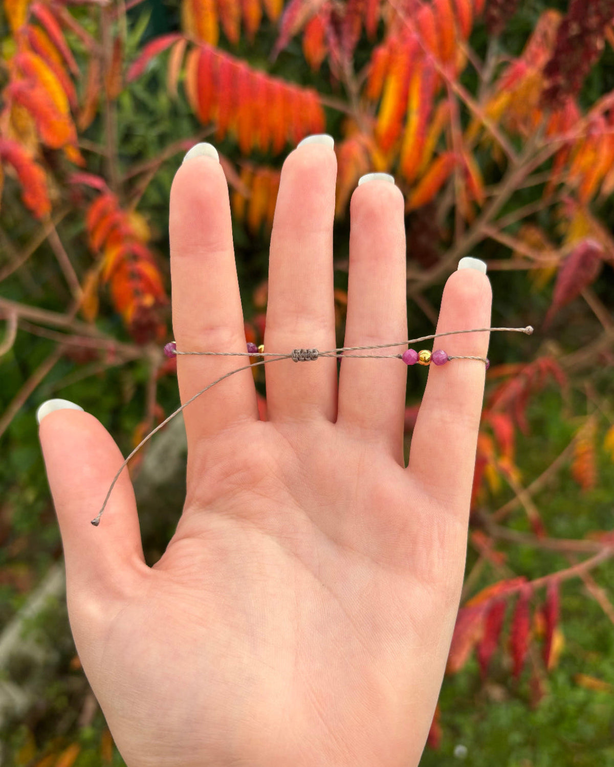 Le bracelet JUVIA se termine par un noeud coulissant. Ce système vous permet d’ajuster facilement la longueur de votre bracelet selon votre poignet.
