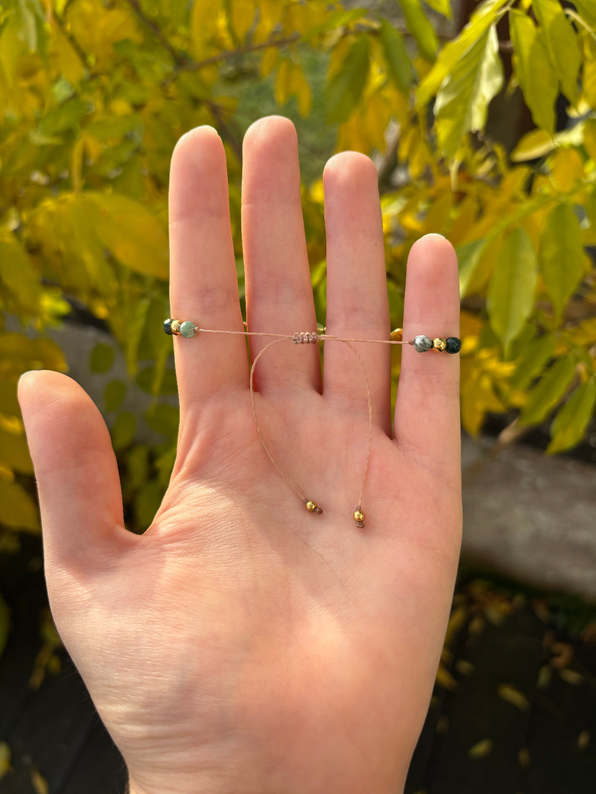 Le bracelet JUVIA se termine par un noeud coulissant. Ce système vous permet d’ajuster facilement la longueur de votre bracelet selon votre poignet.