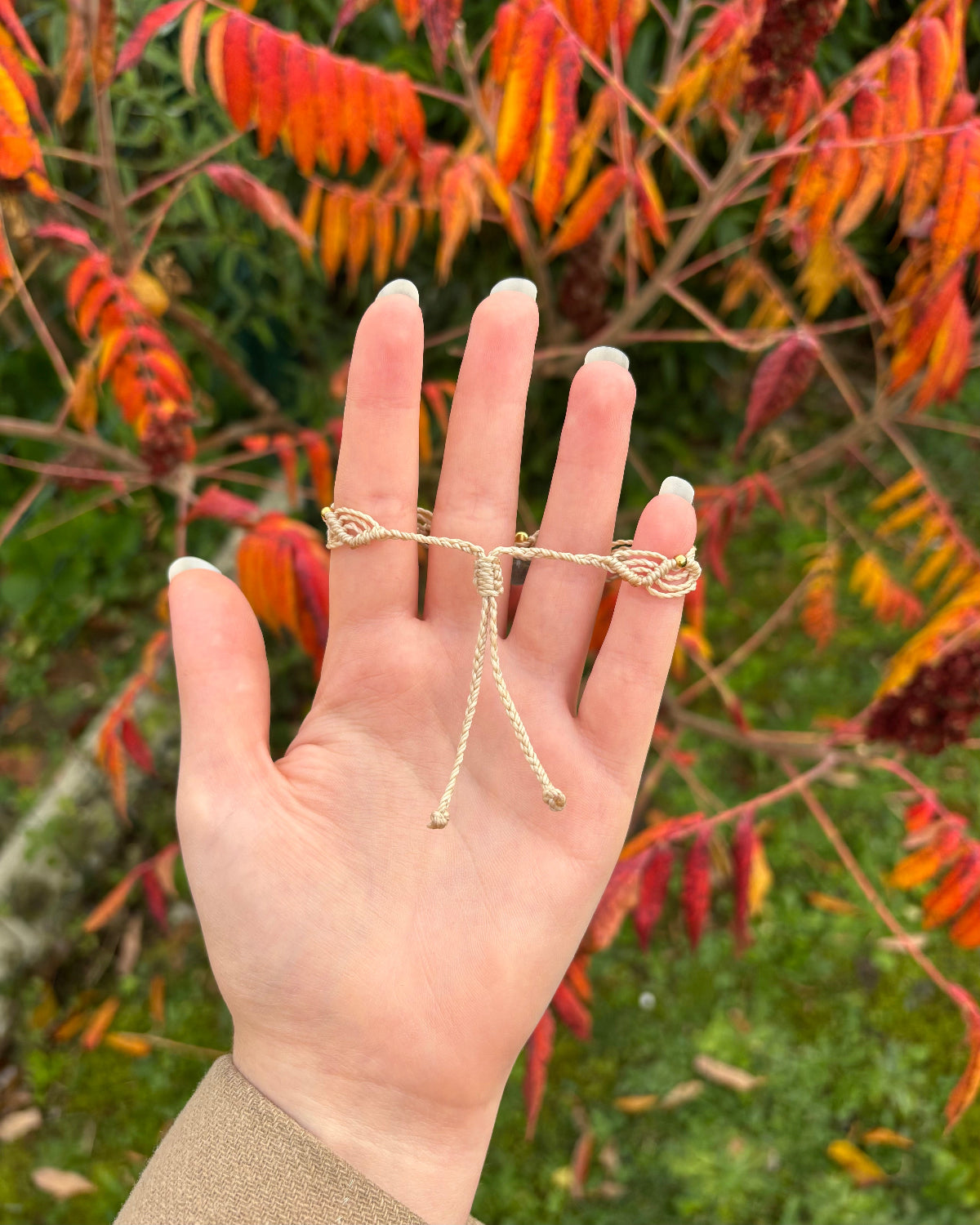 Le bracelet NOVA se termine par un noeud coulissant. Ce système vous permet d’ajuster facilement la longueur de votre bracelet selon votre poignet.